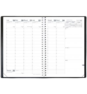 Large choix de formats (A4, A5, poche), de reliures (spirales, brochées) et de vues (journalière ou hebdomadaire)
