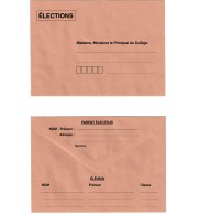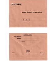 Ces enveloppes sont similaires à celles utilisées pour d'autres élections, mais peuvent être personnalisées avec le nom de l'établissement ou des mentions spécifiques aux élections scolaires.