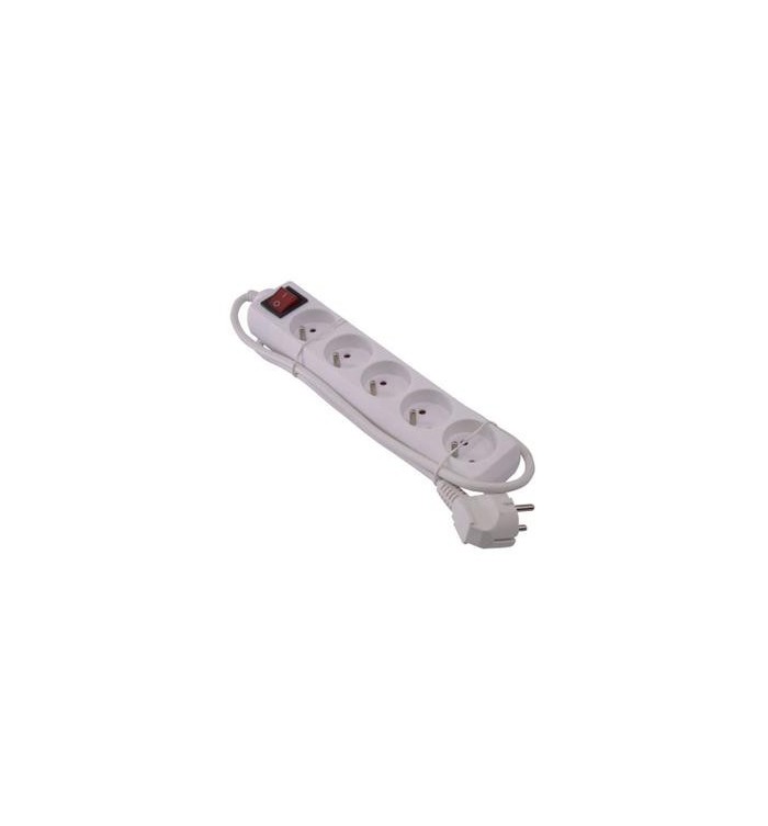Boitier 5 prises avec interrupteur lumineux - câble 1,5m. Norme NF.
