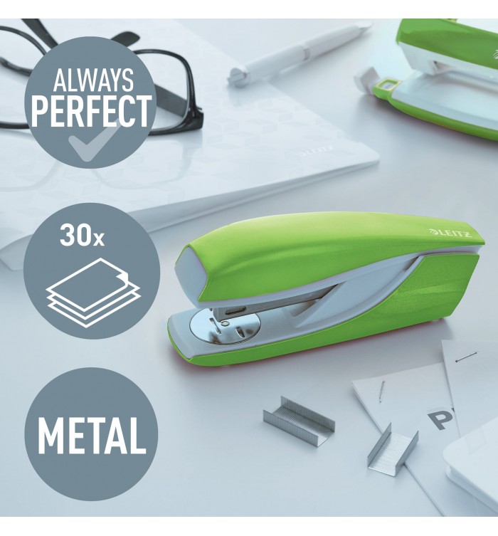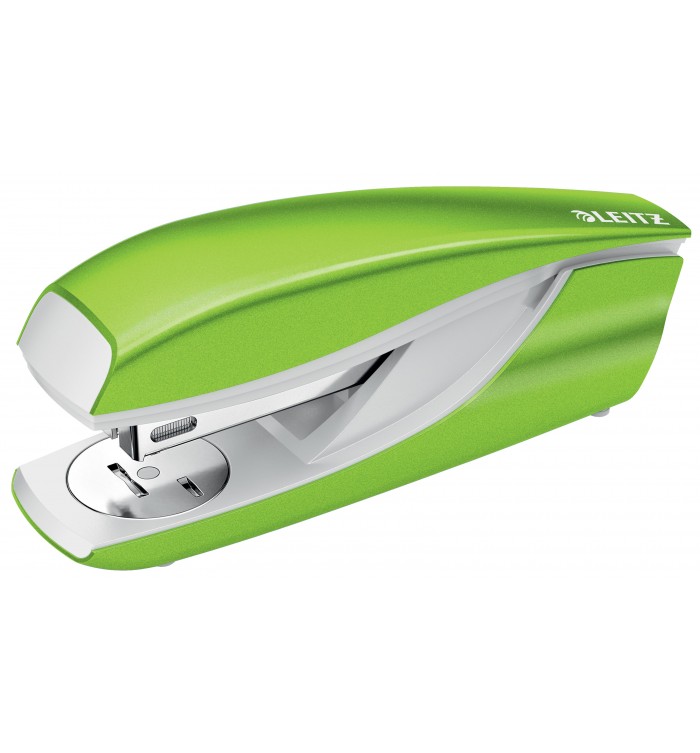 • Agrafeuse en métal avec couvercle et socle en plastique vert
