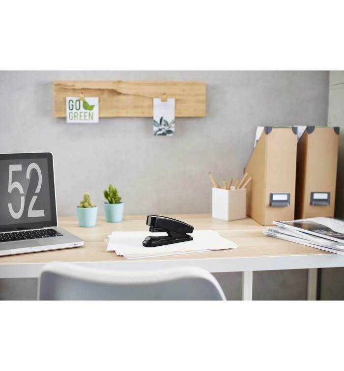 - La technologie « Flat Clinch » assure un agrafage parfaitement plat. Cela permet d'économiser jusqu'à 30 % d'espace dans un classeur.