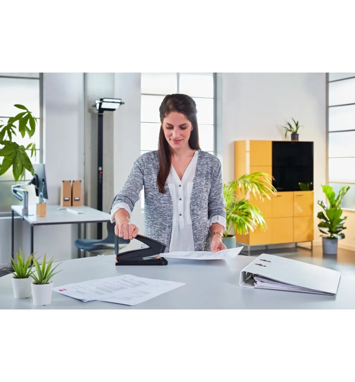 - La technologie « Flat Clinch » assure un agrafage parfaitement plat. Cela permet d'économiser jusqu'à 30 % d'espace dans un classeur.