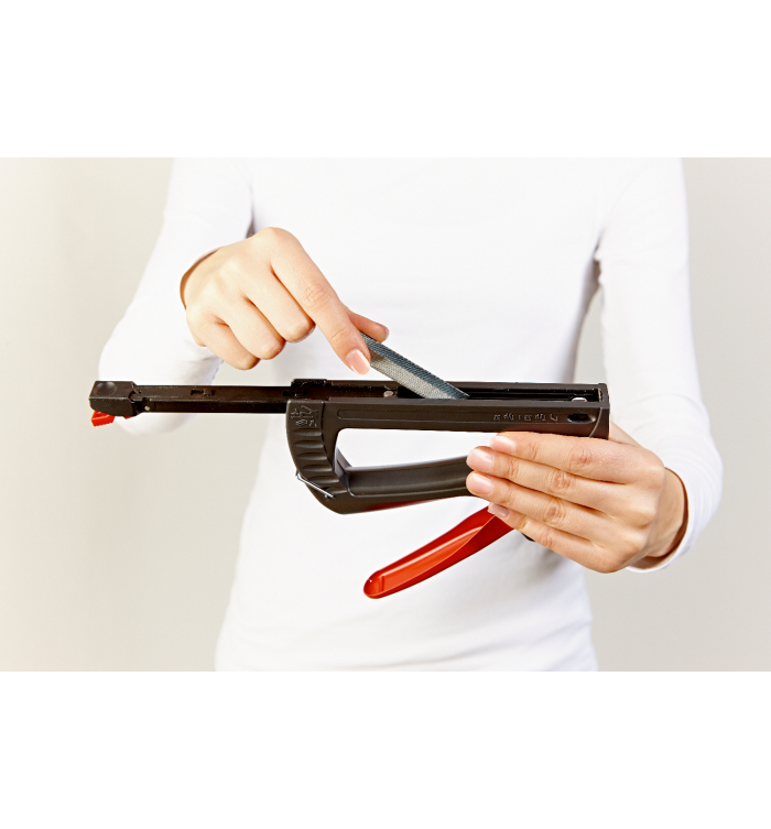 - Tige-poussoir d’agrafes intégrée pour recharger rapidement les agrafes. Toutes les pièces sont fixées sur l’appareil afin d’éviter les pertes.