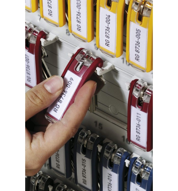 Le porte-clés Key Clip Durable se distingue par son design ingénieux qui permet une identification facile et rapide des clés. Avec son champ d'identification visible en permanence, vous n'avez plus besoin de perdre du temps à retirer l'anneau pour consulter l'étiquette. Il s'adapte parfaitement aux boîtes à clés Key Box et aux panneaux muraux Key Board, offrant ainsi une solution complète pour votre gestion de clés.