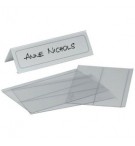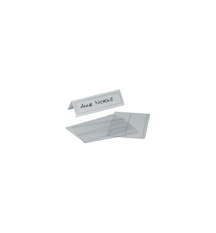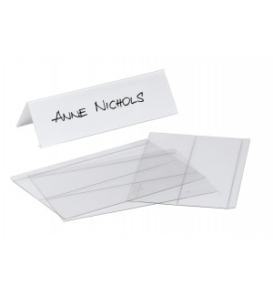 Chevalets porte-noms. Supports polyéthylène prépliés et livrés à plat. Très facile à mettre en place. Livré avec 10 insertions personnalisables en bristol blanc. Sachet de 10 chevalets.