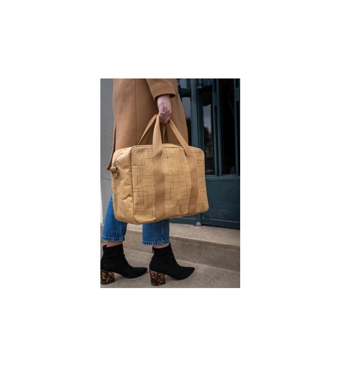 Fabriqué à partir de simili cuir végétal (aussi appelé washable paper), ce sac résistant est composé d’un papier enduit de latex naturel, certifié FSC®, issu de ressources végétales durables. Pour une finition totalement naturelle, l’intérieur est doublé de coton organique.