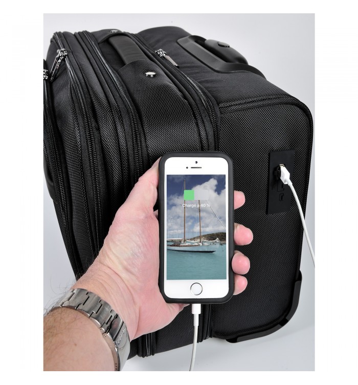 Compatible bagage à main pour la plupart des compagnies aériennes. Le compartiment ordinateur peut être sécurisé grâce au cadenas à combinaison TSA.