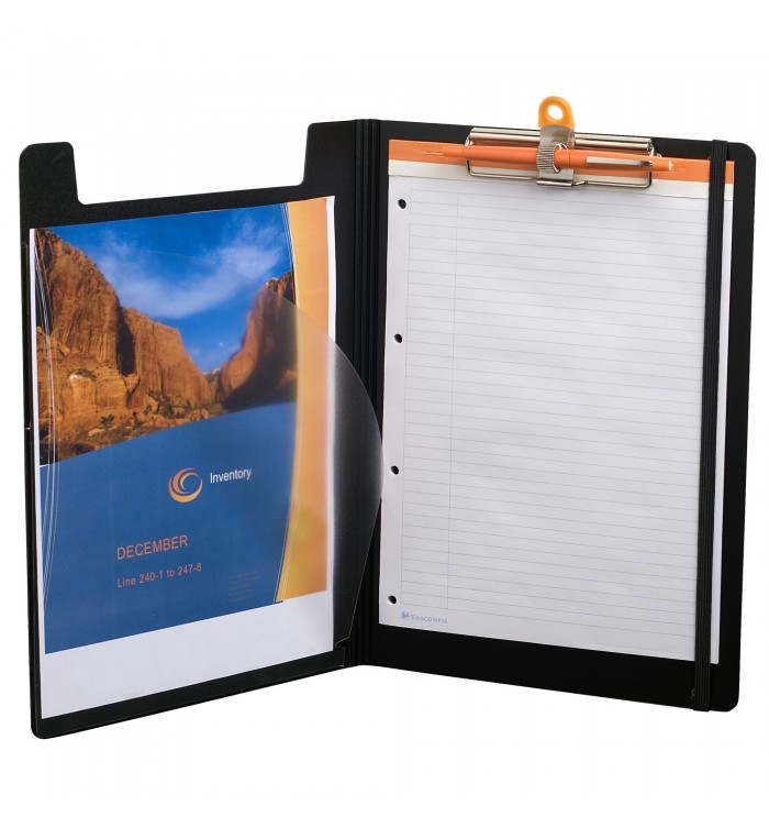 Ce Porte bloc avec rabat est très pratique pour un usage quotidien et intensif. Grâce à son élastique, il est parfaitement maintenu fermé ou ouvert lors de son utilisation.