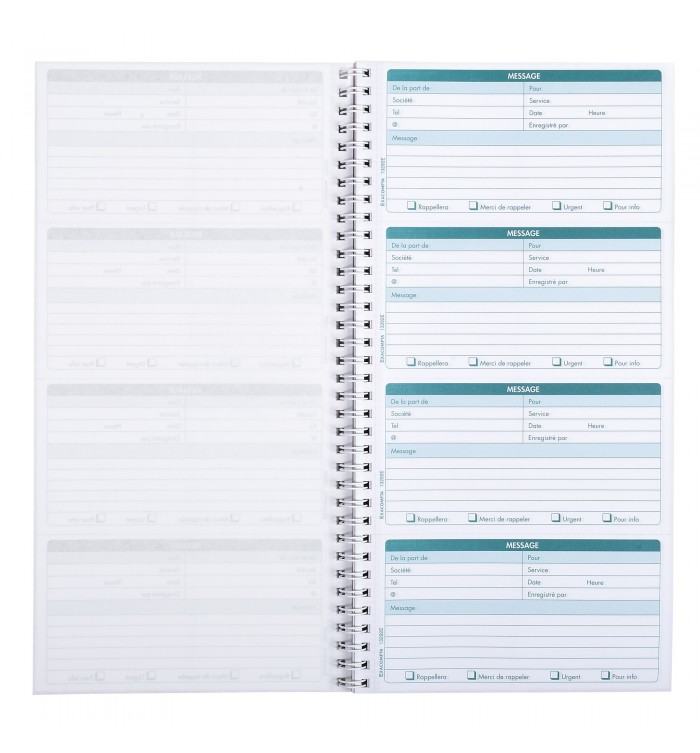 Ce carnet spiralé est très pratique pour noter les messages, les transmettre à la personne concernée et garder une copie de ce qu'on a transmis.