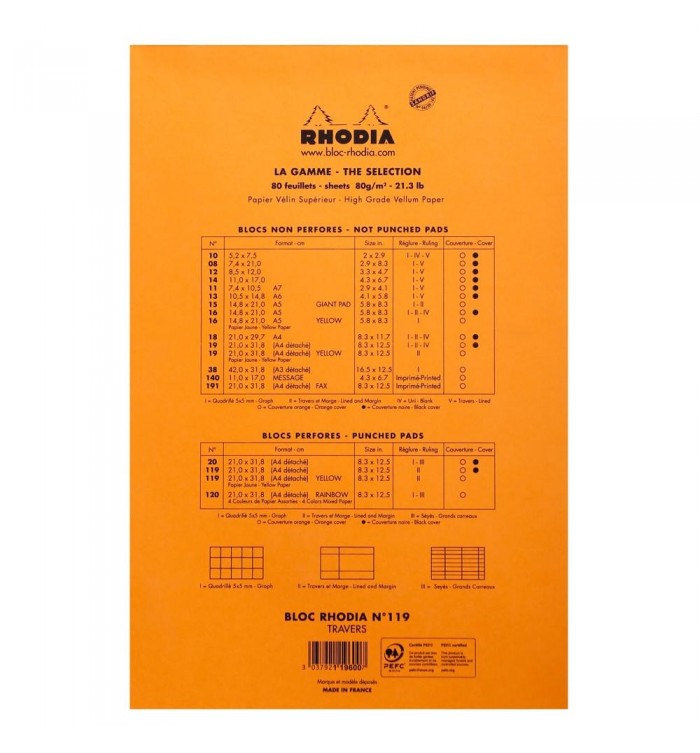 Le bloc Rhodia ligné 210x318mm est doté d'une sole cartonnée rigide, permettant une prise de notes confortable même sans surface d'appui. Sa couleur orange distinctive assure une identification rapide, évitant toute confusion avec d'autres documents.