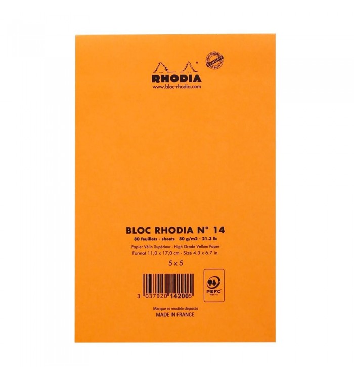 BLOC NOTES RHODIA 110X170mm QUADRILLE 5X5- 80G