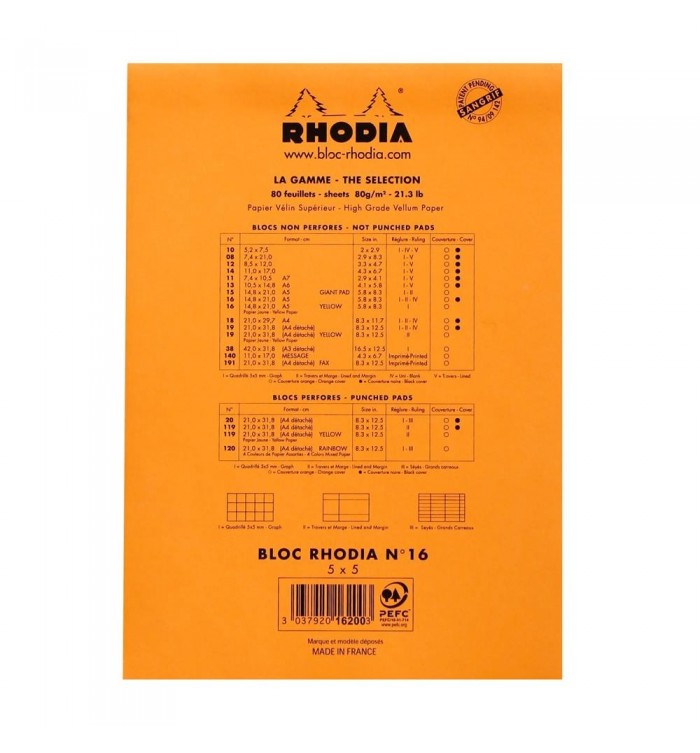 BLOC NOTES RHODIA 148X210mm QUADRILLE 5X5 - 80G