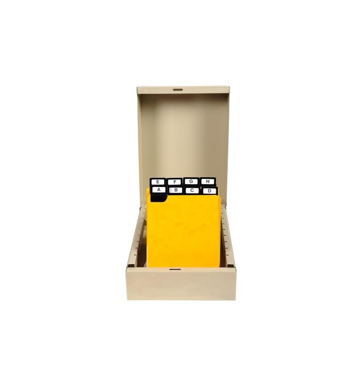 Optimisez le classement vertical de vos fiches 150 × 105 mm avec ce pack de 24 guides alphabétiques en carte résistante et onglets métalliques noirs.