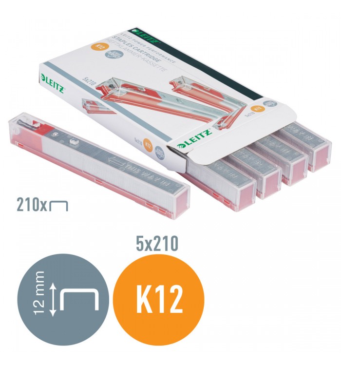 Cassette d'agrafes en acier résistant. Performance optimale quand utilisée avec l'agrafeuse gros travaux Leitz 5551.