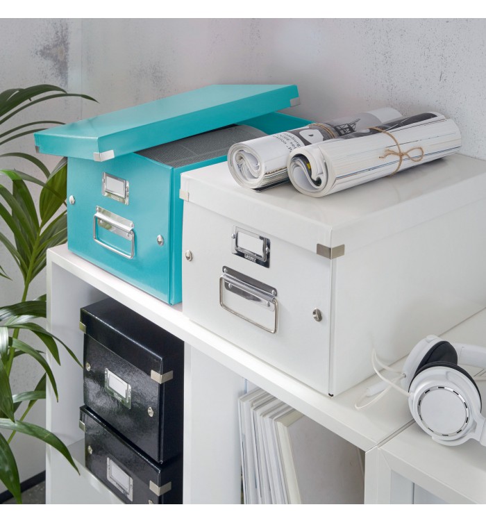 - Les boîtes de rangement Leitz Click & Store sont faciles et rapides à monter et à plier et ne s'ouvrent jamais accidentellement grâce à leur conception brevetée.