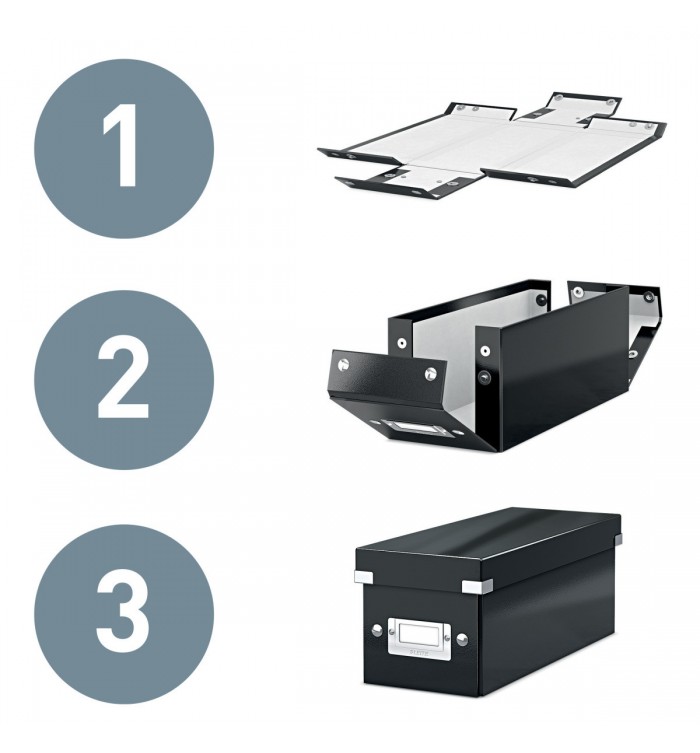 - Les boîtes de rangement Leitz Click & Store sont faciles et rapides à monter et à plier et ne s'ouvrent jamais accidentellement grâce à leur conception brevetée.