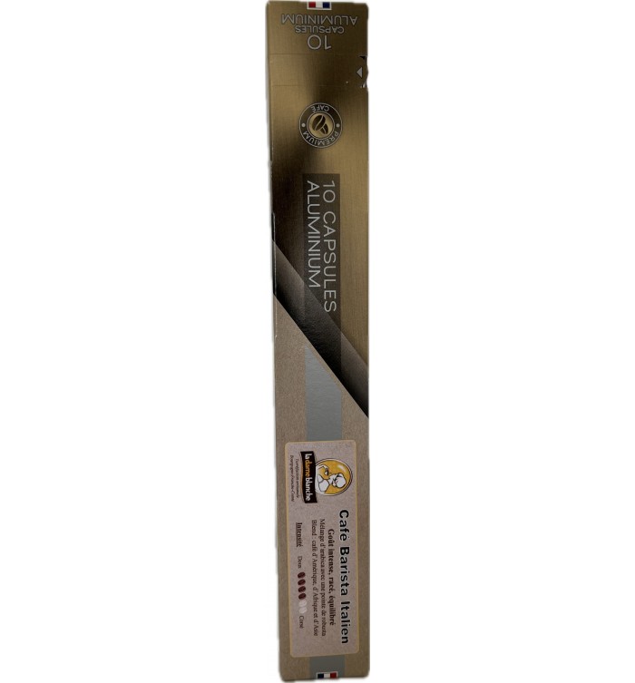 Café Barista Italien en lot de 10 dosettes compatible Nespresso. Intense, racé et équilibré. Mélange d'arabica avec une pointe de robusta. Provenance d'Amérique, d'Afrique et d'Asie.