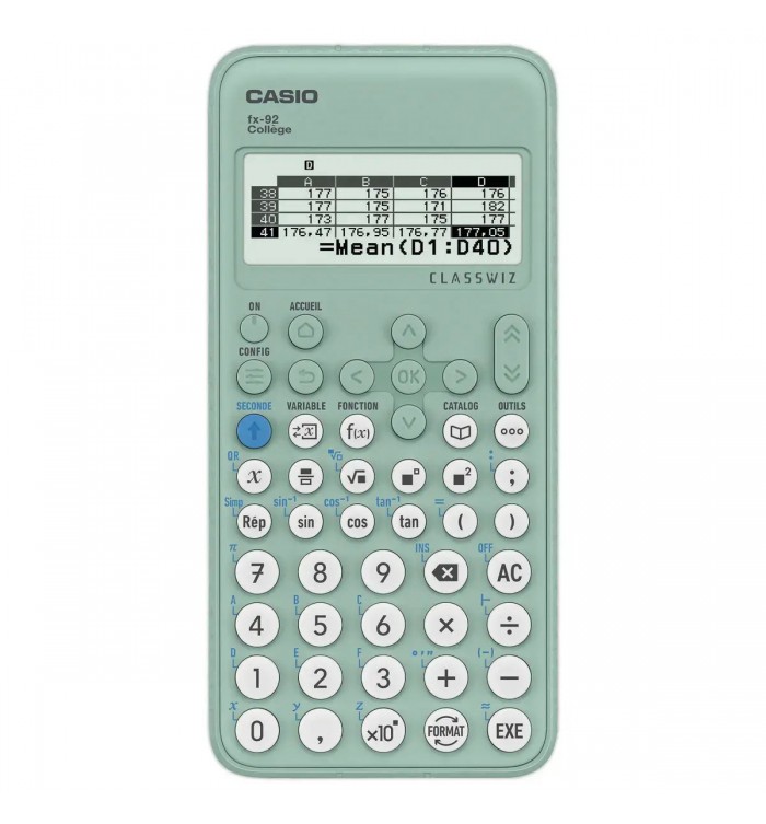 Machine à calculer scientifique Casio FX92 New Spéciale Collège Classwiz, conçue pour les programmes du collège de la 6ème à la 3ème.