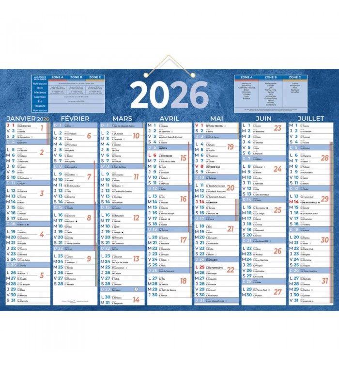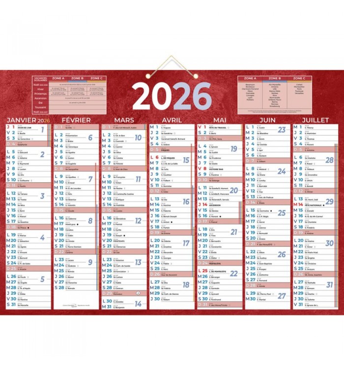 - Grille détaillée incluant les congés, fêtes et autres événements importants