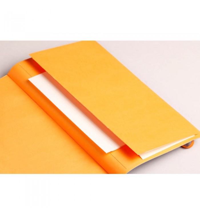 La couverture souple en simili cuir italien et la finition cousue main confèrent à ce carnet une robustesse et une élégance incomparables. Le logo Rhodia embossé et la fermeture élastique orange ajoutent une touche de sophistication et de sécurité. De plus, le ruban marque-page et la pochette à soufflet, tous deux en orange, facilitent l'organisation et l'accès rapide à vos notes importantes.