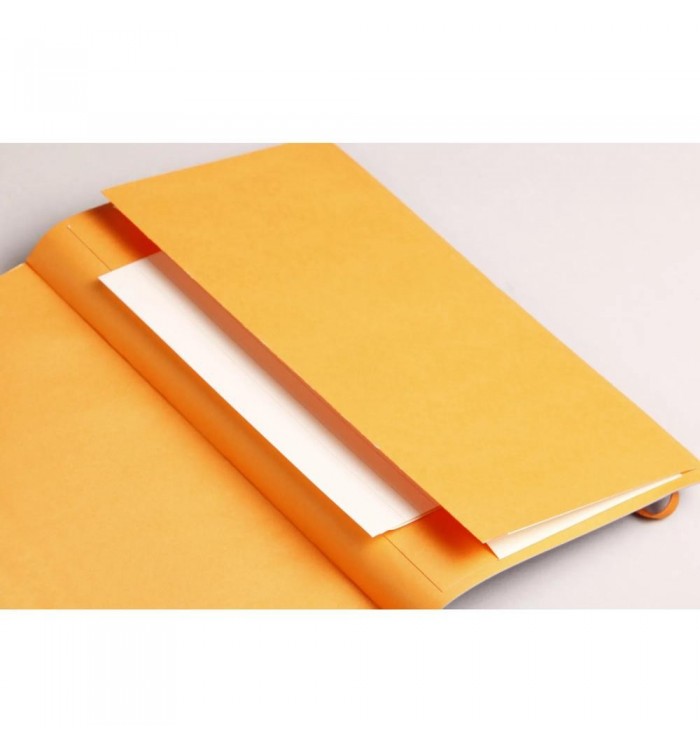 Le carnet Rhodiarama se distingue par sa couverture souple en simili cuir italien, qui lui confère une allure raffinée et professionnelle. Le logo Rhodia embossé ajoute une touche d'élégance, tandis que la fermeture élastique orange assure la sécurité de vos notes. Avec son format compact de 14,8 x 21 cm, il se glisse facilement dans un sac ou un tiroir de bureau.