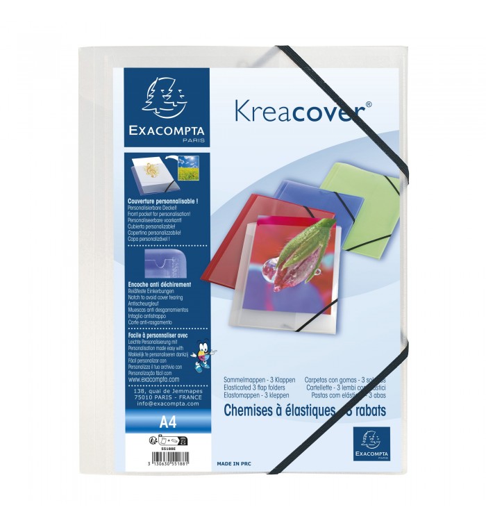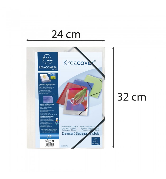 Chemise à élastiques 3 rabats polypropylène translucide Krea Cover - A4 Incolore