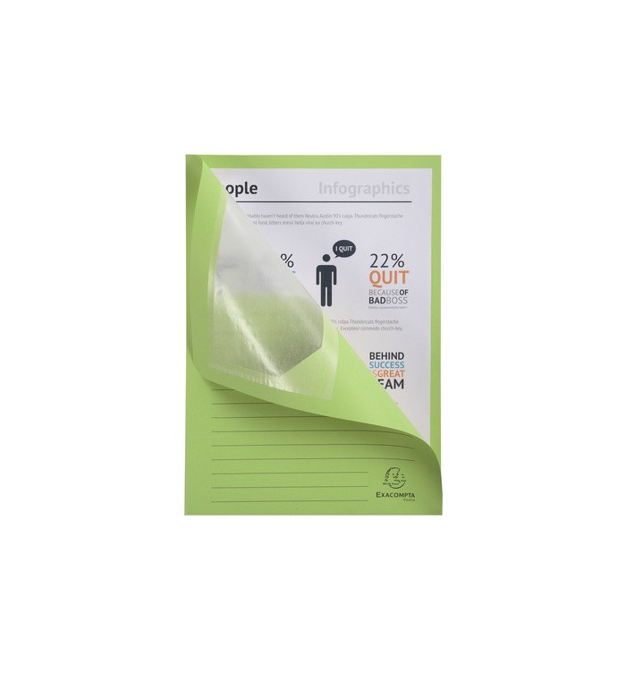 Les chemises à fenêtre d'Exacompta sont maintenant entièrement conçues en papier. La fenêtre de visualisation est ainsi en papier calque au lieu de l'ancien film plastique. Un vrai progrés pour limiter notre consommation de plastique et nos déchets nosifs pour l'environnement.