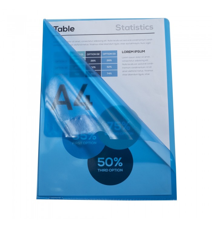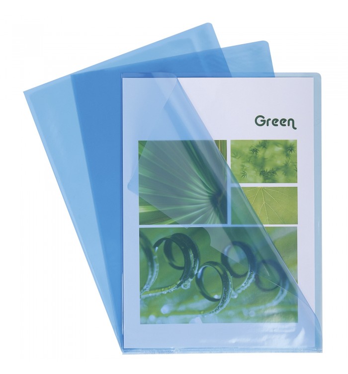 Etui carton de 100 pochettes coin PVC lisse haute résistance 13/100e - A4 Bleu