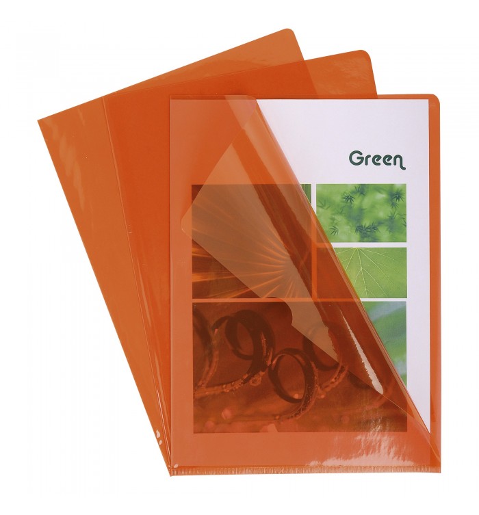 Etui carton de 100 pochettes coin PVC lisse haute résistance 13/100e - A4 Orange