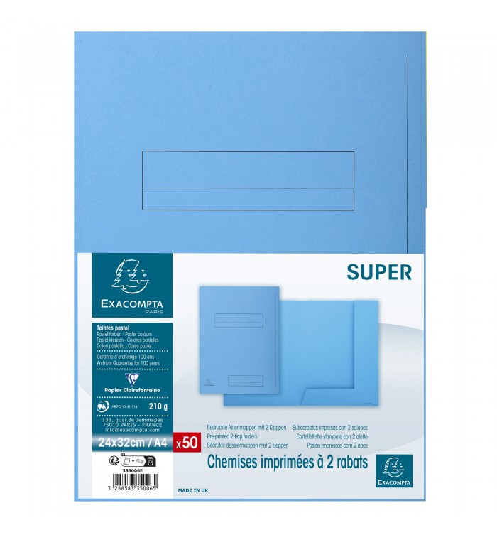 Paquet de 50 chemises imprimées 2 rabats SUPER 210 - 24x32cm Bleu clair