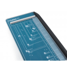 - Lignes de format sur la table pour un meilleur alignement du matériau avec une graduation pratique en mm le long du bord de coupe