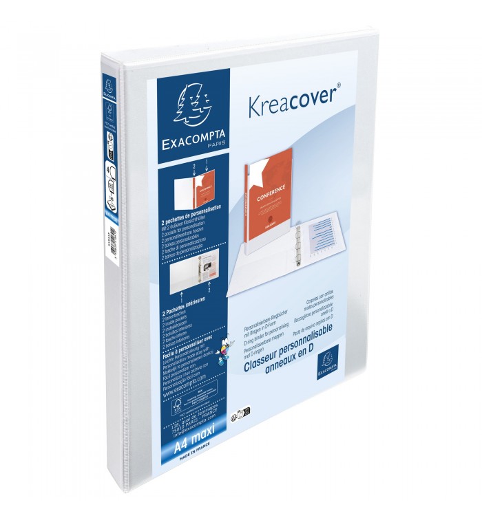 Kreacover®, la gamme de classement qui reflète votre image. Une solution rapide et qualitative pour présenter un dossier personnalisé et facilement modulable. Couverture rigide. 3 pochettes extérieures pour personnaliser la 1ère de couverture, le dos et la 4ème de couverture. 2 pochettes intérieures permettant le maintien des feuilles. Anneaux en D pour un alignement parfait des feuilles et des intercalaires. Qualité supérieure pour une utilisation intensive. Grâce à son format A4 maxi, il s'adapte à tout type de documents.