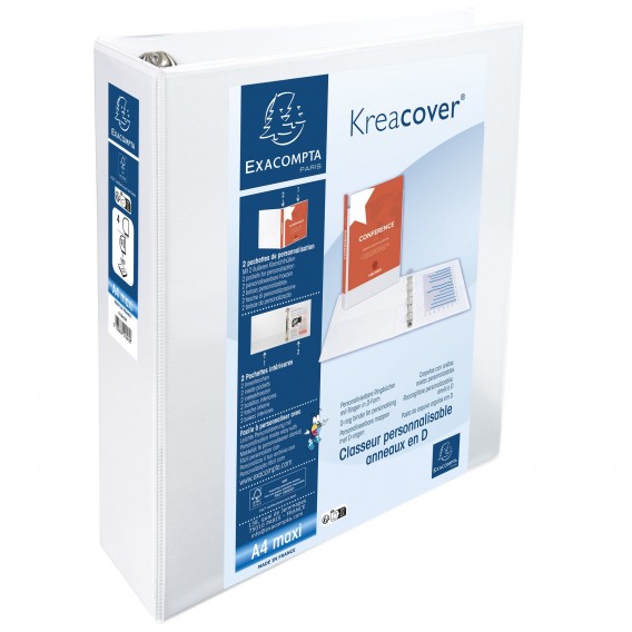 Kreacover®, la gamme de classement qui reflète votre image. Une solution rapide et qualitative pour présenter un dossier personnalisé et facilement modulable. Couverture rigide. 3 pochettes extérieures pour personnaliser la 1ère de couverture, le dos et la 4ème de couverture. 2 pochettes intérieures permettant le maintien des feuilles. Anneaux en D pour un alignement parfait des feuilles et des intercalaires. Qualité supérieure pour une utilisation intensive. Grâce à son format A4 maxi, il s'adapte à tout type de documents.