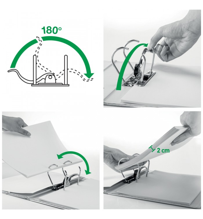 - Mécanisme unique breveté qui s'ouvre à 180° pour une ouverture 50% plus large et un classement 20% plus rapide.