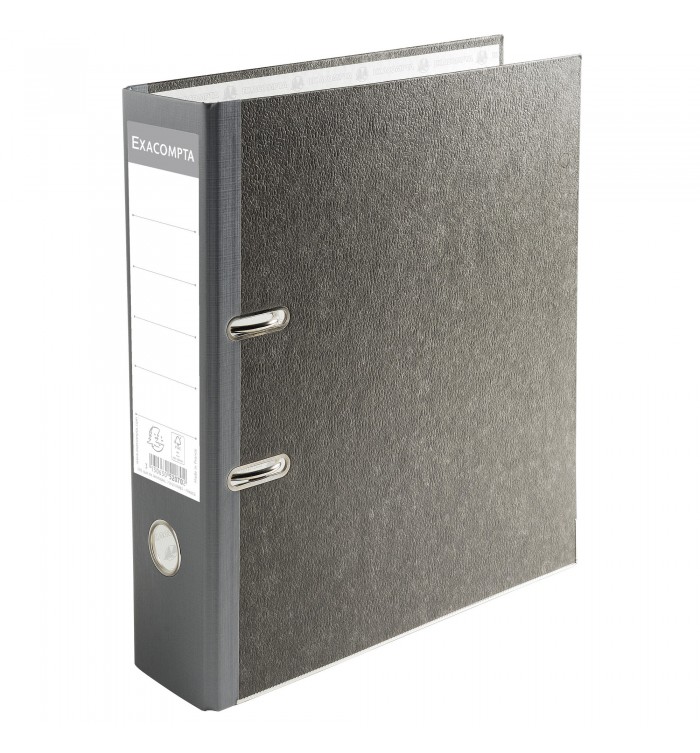 Classeur à levier papier marbre gris dos de 70mm - avec perforateur - A4. Gris-dos gris