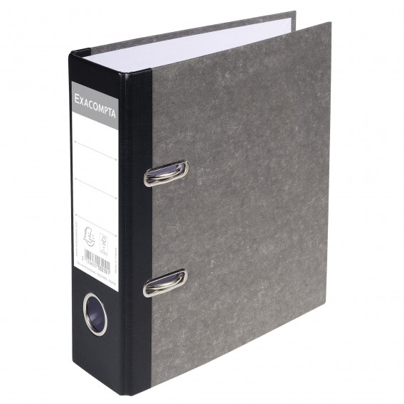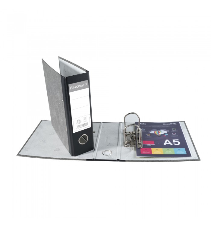 Classeur à levier papier marbre gris dos de 70mm - A5 vertical. Gris-dos noir
