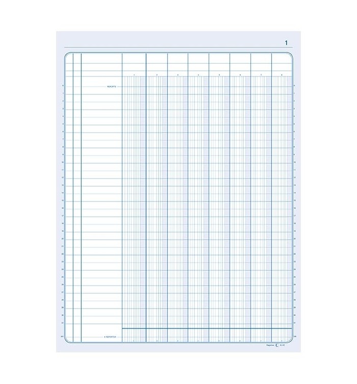 Registre comptable à couverture souple en carte lustrée. Impression encre bleue sur papier offset 80g/m2. Tracé 8 colonnes par page. Idéal pour tenir sa comptabilité.