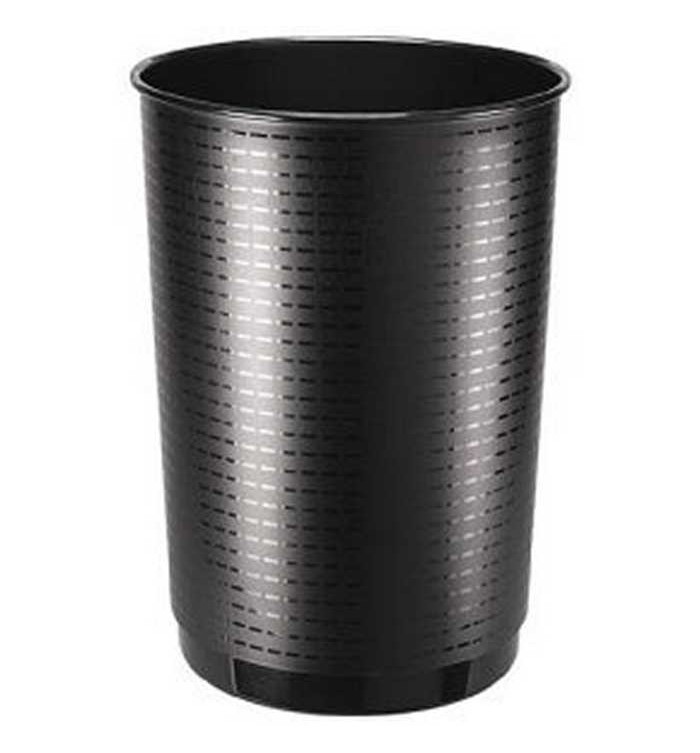 Maxi corbeille à papiers. Paroi pleine au décor mat sur fond brillant. A la fois souple et robuste, elle se manie très facilement grâce à sa légèreté. Coloris noir. Dimensions : diam 380 mm x hauteur 495 mm x volume 40 litres.