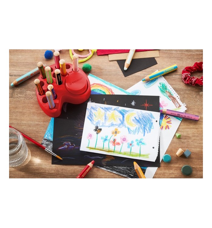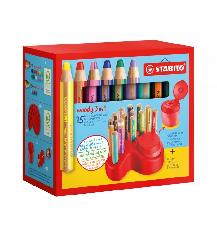 - Contient 15 crayons multi-talents et multi-surfaces STABILO woody 3 in 1