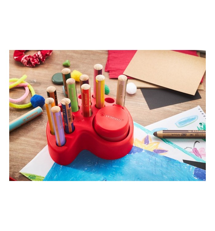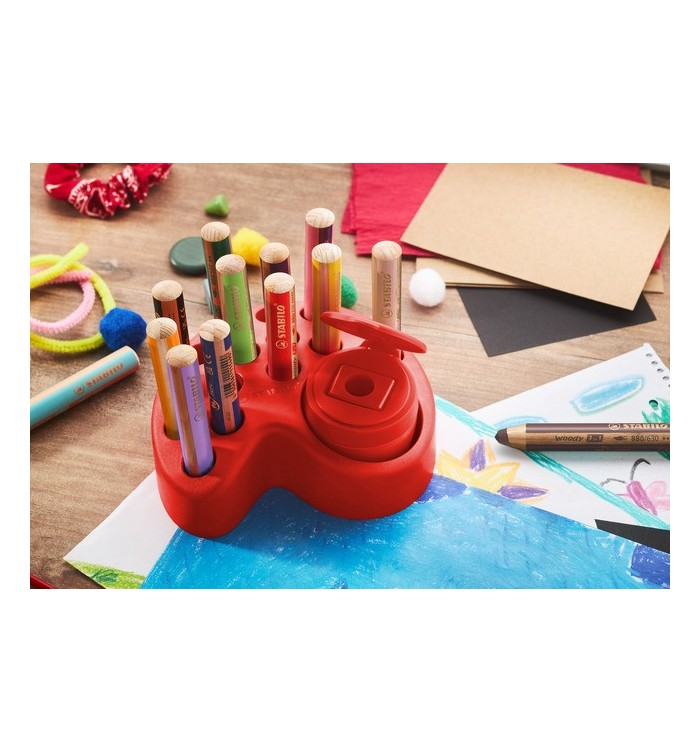 SET 15 STABILO WOODY 3 EN 1 + 1 TAILLE-CRAYON + 1 SUPPORT RANGEMENT