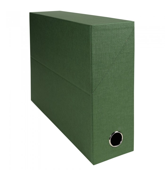 En carton rigide recouvert de papier toilé teinté, cette boite transfert est très pratique pour archiver proprement tous les dossiers volumineux.