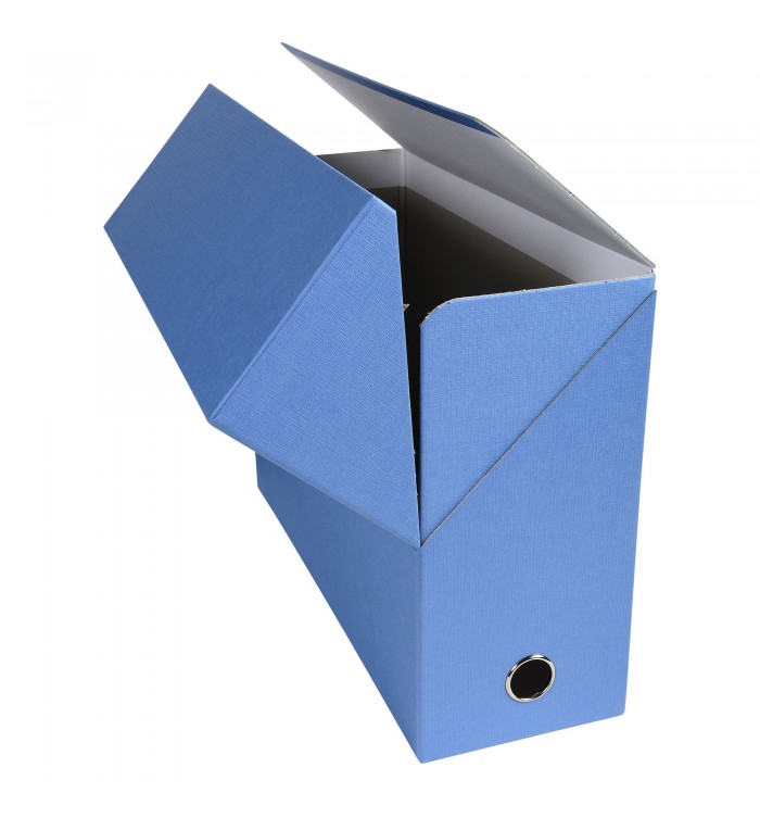 En carton rigide recouvert de papier toilé teinté, cette boite transfert est très pratique pour archiver proprement tous les dossiers volumineux.