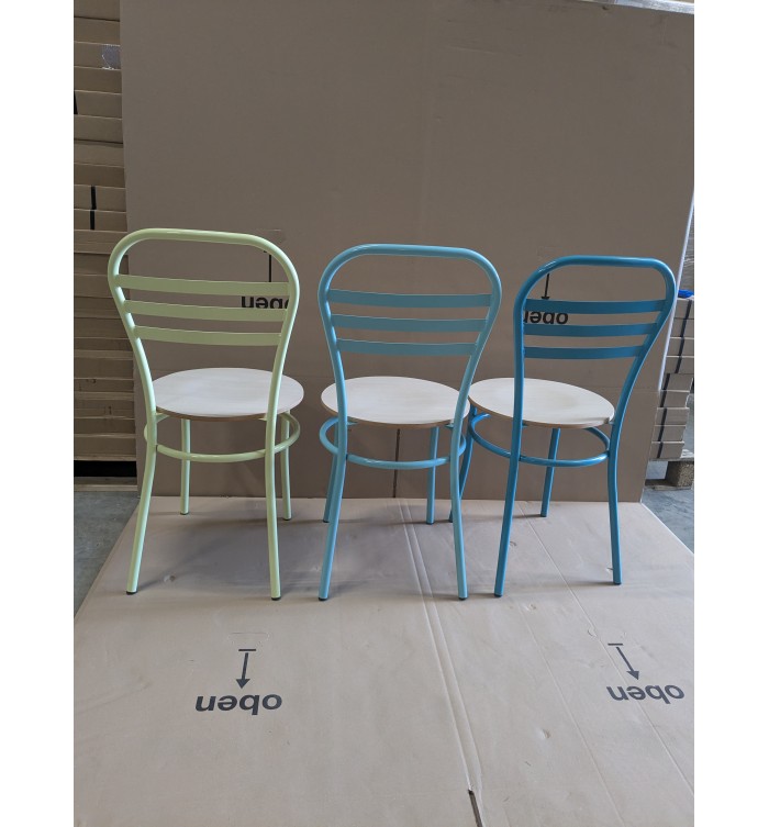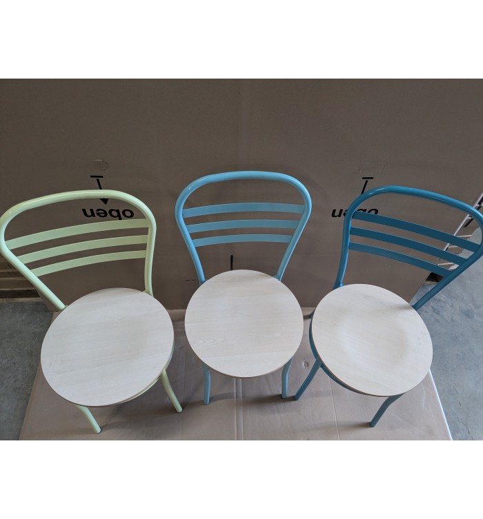 STOCK : 5 chaises époxy jaune - 3 chaises époxy vert clair - 5 chaises époxy vert opalin