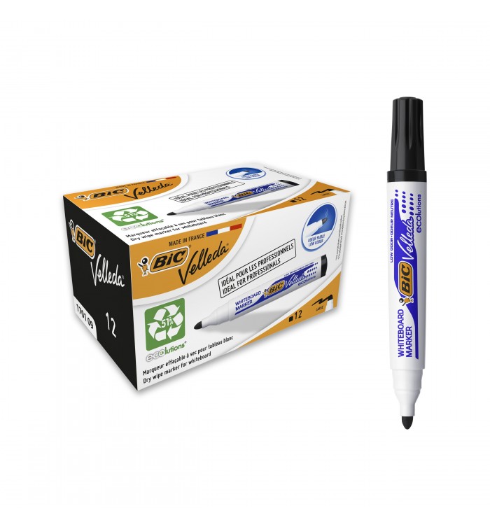 Fabriqués en France, ces marqueurs Velleda 1701 ECOlutions témoignent de l'engagement de BIC envers la durabilité. Ils sont composés à 51% de matière recyclée (à l'exception du système d'encre), ce qui en fait un choix respectueux de l'environnement pour les professionnels conscients de leur impact écologique.