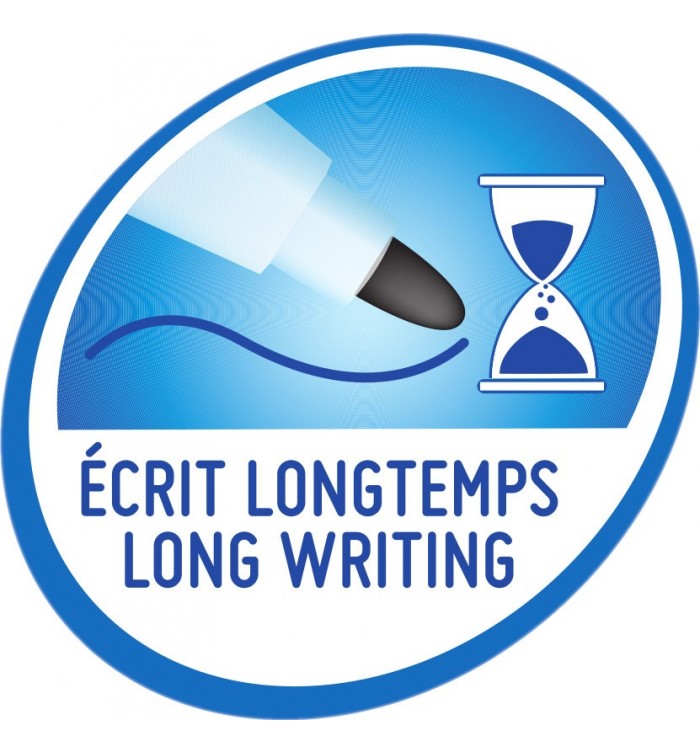 - La pointe est bloquée : elle écrit sans s'enfoncer sur tous les tableaux blancs ou rouleaux BIC Velleda