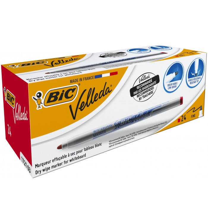 - Ces marqueurs effaçables à sec BIC Velleda 1721 sont dotés d'une pointe fine compatible avec les ardoises et tableaux blancs BIC Velleda