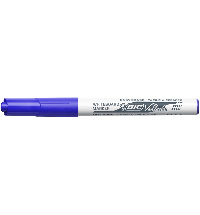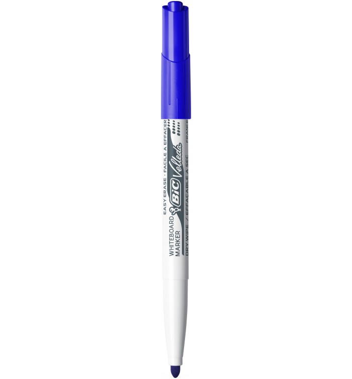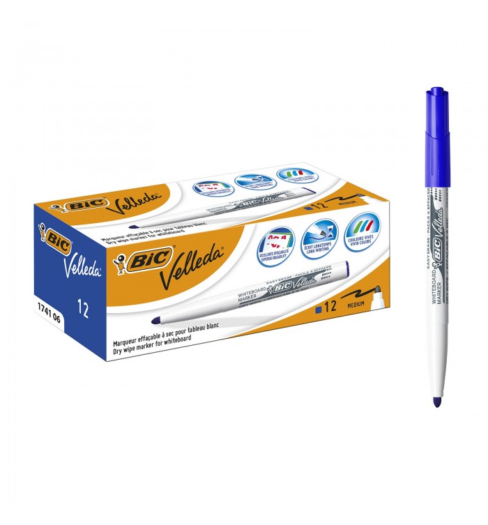 Ces feutres bleus BIC Velleda 1741 écrivent longtemps et s'effacent très facilement. Ils permettent un tracé d'épaisseur moyenne (largeur de trait de 1,4 mm). Leur pointe ogive est bloquée : elle écrit sans se courber ou s'enfoncer à la pression sur tableaux blancs ou rouleaux BIC Velleda.