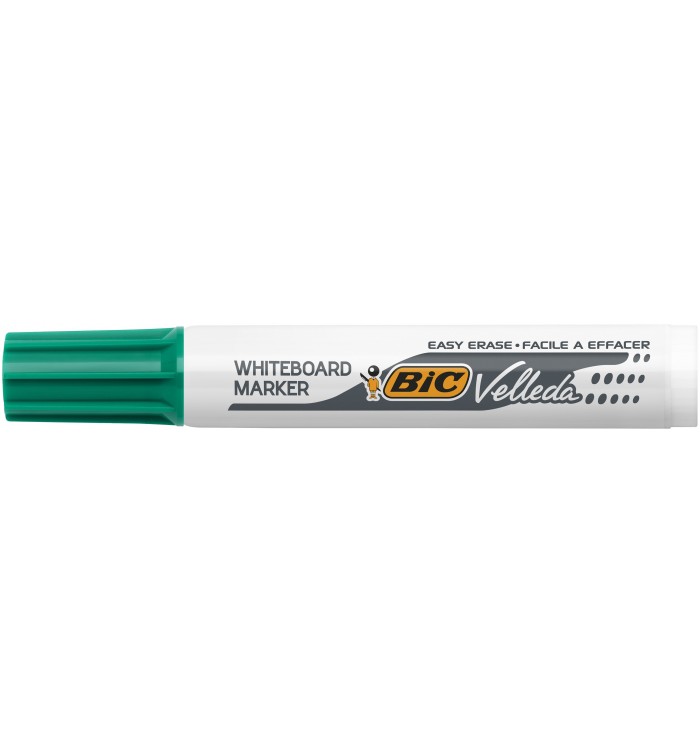 Feutres effaçable à sec BIC Velleda 1791 à encre verte. Pour apporter de la nuance dans vos présentations, leur pointe biseau en acrylique fait varier la largeur du trait entre 3,3 mm et 4,6 mm. Parfaits pour un usage professionnel, ils s'effacent à sec très facilement, même après plusieurs jours.