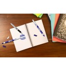 - Double pointe, ils permettent à la fois d'effacer l'encre des stylos-plumes et de réécrire avec une encre bleu foncée permanente