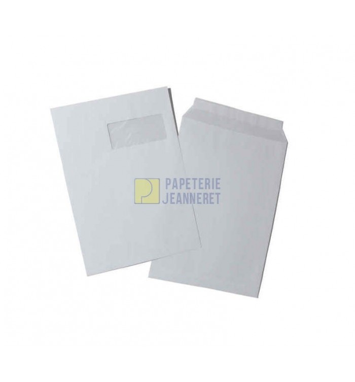 50 POCHETTES BLANCHES 229X324mm 90G FENETRE AUTOADHESIVES